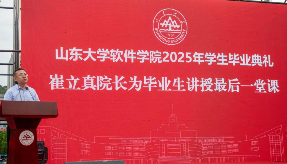 典礼最后,崔立真为2025届所有毕业生上最后一堂课。他向毕业生提出三点嘱托:一是要拥抱AI时代,看清方向,把握机遇,在时代坐标中锚定成长航向,以主动者的姿态勇立潮头;二是要学⽽有恒,⼼怀热爱,久久为功,终会迎来 “云开月明”的豁然开朗;三是要相逢美好,在新的人生征程上,以智慧和勇气在未知挑战中破局前行,在各⾃的领域发光发热。他衷心祝愿每一位毕业生前程似锦、未来可期,taptap点点体育永远是软院学子梦想起航的港湾和精神家园,期待校友们常回家。