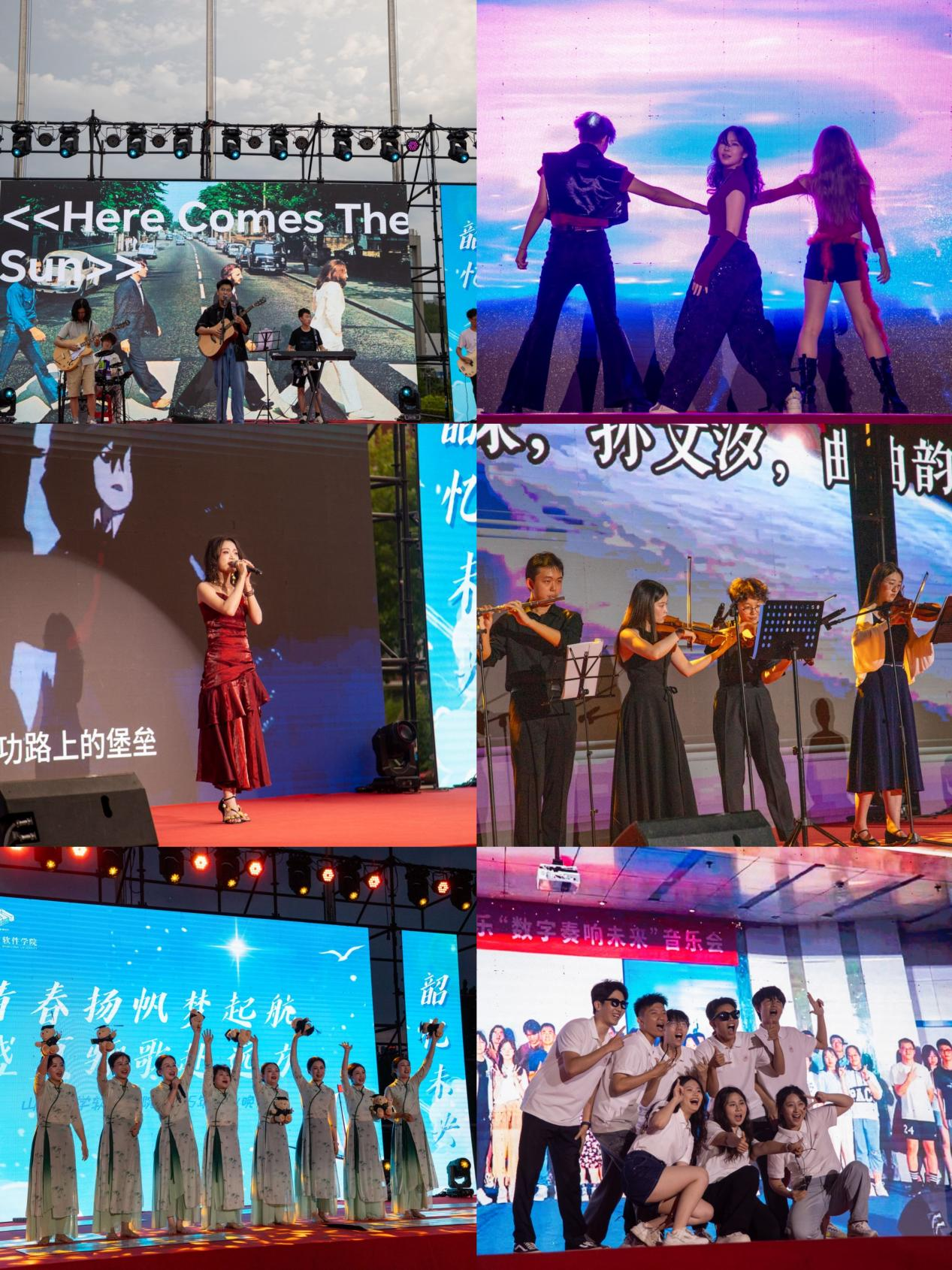 典礼结束,毕业晚会正式开始,乐队《here comes the sun》《hey jude》以多元的音乐元素,经典的音乐旋律,带同学们走入一段段流金岁月;街舞协会的舞蹈《Toxic》以动感的活力,展示给同学们青春的魅力风暴;歌曲《送你一朵小红花》《天空》等广为传唱的曲目让我们想起世间万物馈赠予我们的点点滴滴,这些教会我们成长,陪我们走过低谷,迎来阳光;《平凡的一天》《二十二》唱尽同窗情谊与青春岁月;软件学院器乐团带来高雅经典的小提琴协奏曲《一步之遥》《vivalavida》,不仅展示了学院在五育并举方面的有效成果,也让大家随着旋律陷入对未来和生命的深深思考之中;月光皎皎似师恩,软件学院女老师们一曲《世界赠予我的》舞蹈,留下最美舞姿,无论何时何地都向学生们传达着积极的生活态度,学习热情;男教师代表一首《再见 启程》歌曲串烧,包含对毕业生的不舍与祝福,将晚会气氛推向高潮。最后,伴随着《我的山大我的家》大合唱,毕业晚会落下了帷幕。