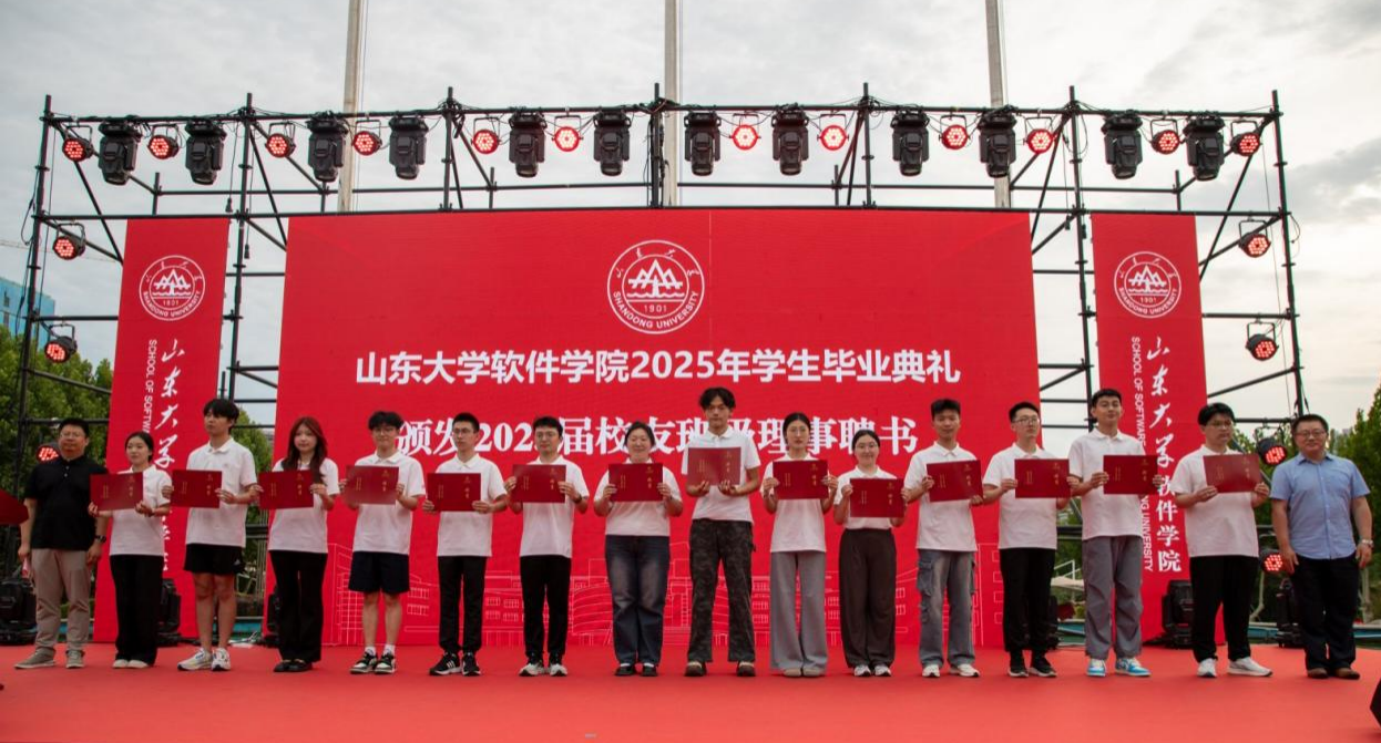 6月18日,软件学院2025年学生毕业典礼暨毕业晚会举行。软件学院党委书记姜炳刚,院长崔立真,校友代表李硕参加活动。