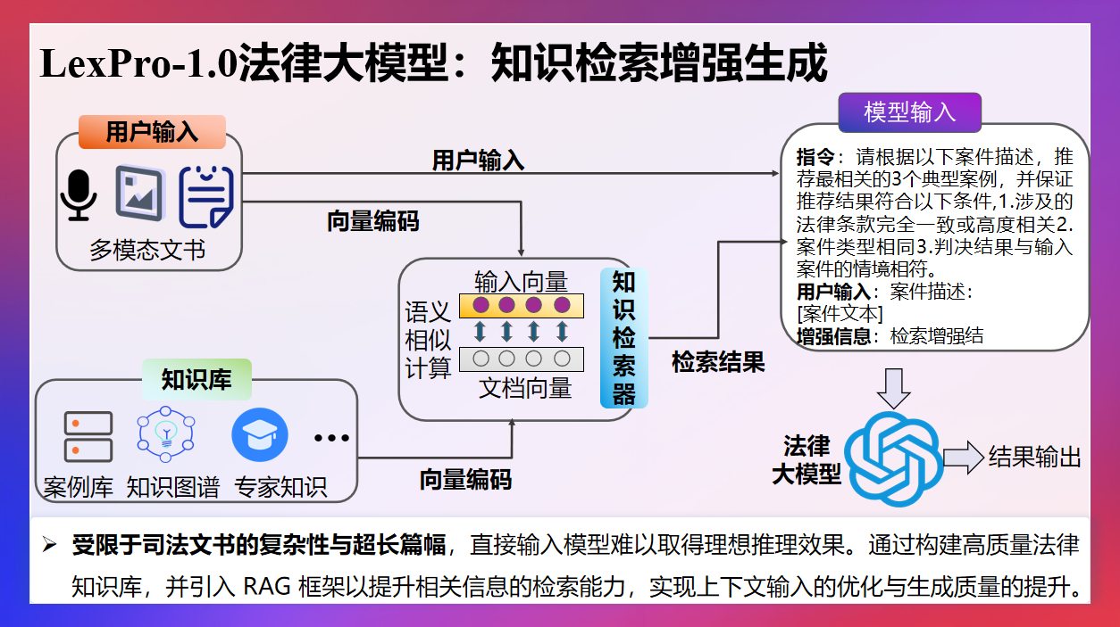 图1:基于知识检索增强的LexPro法律大模型推理流程