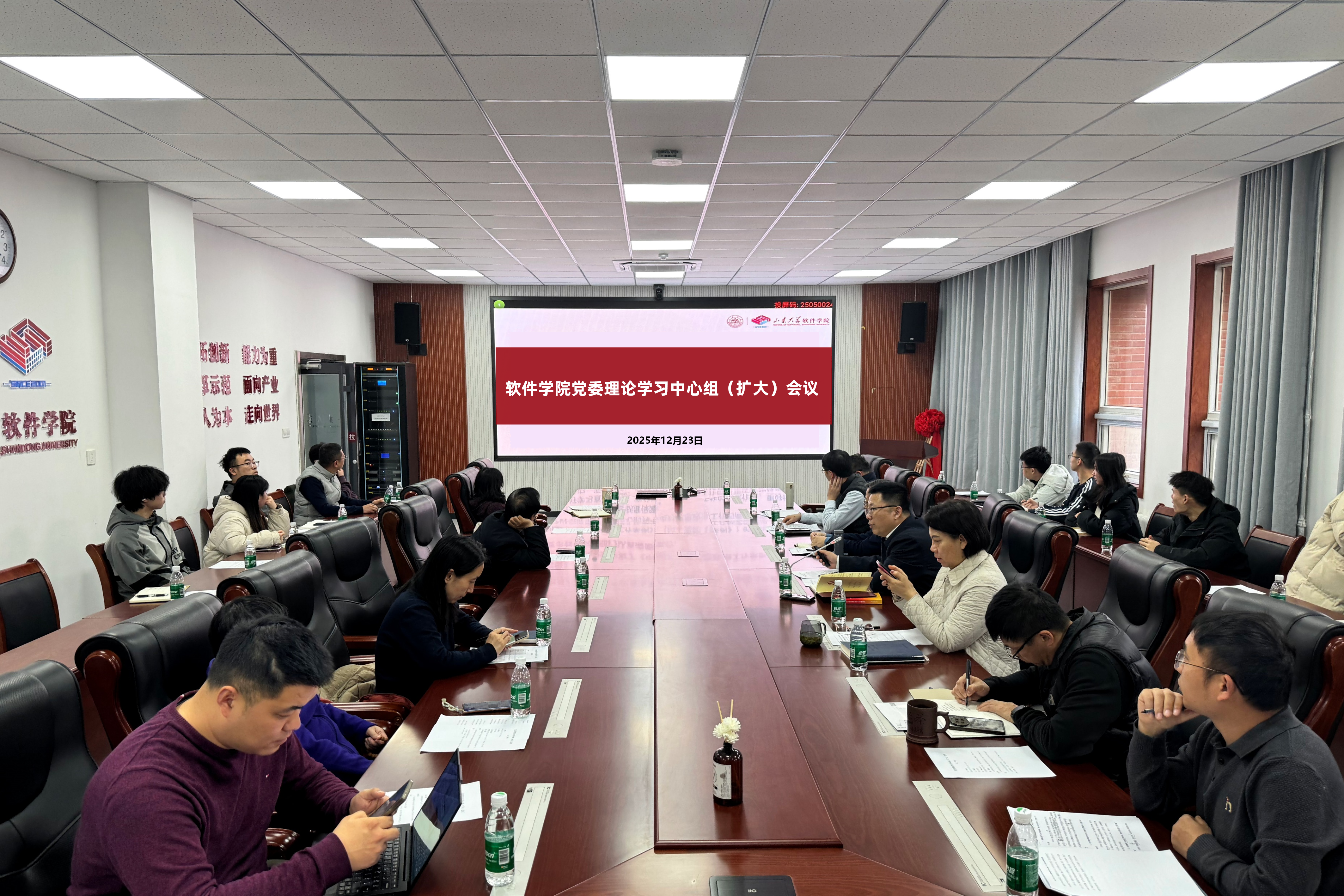 12月23日下午,软件学院举行党委理论学习中心组(扩大)会议。学院党委书记姜炳刚主持会议,党委理论学习中心组成员、教工党支部书记、辅导员参加会议。