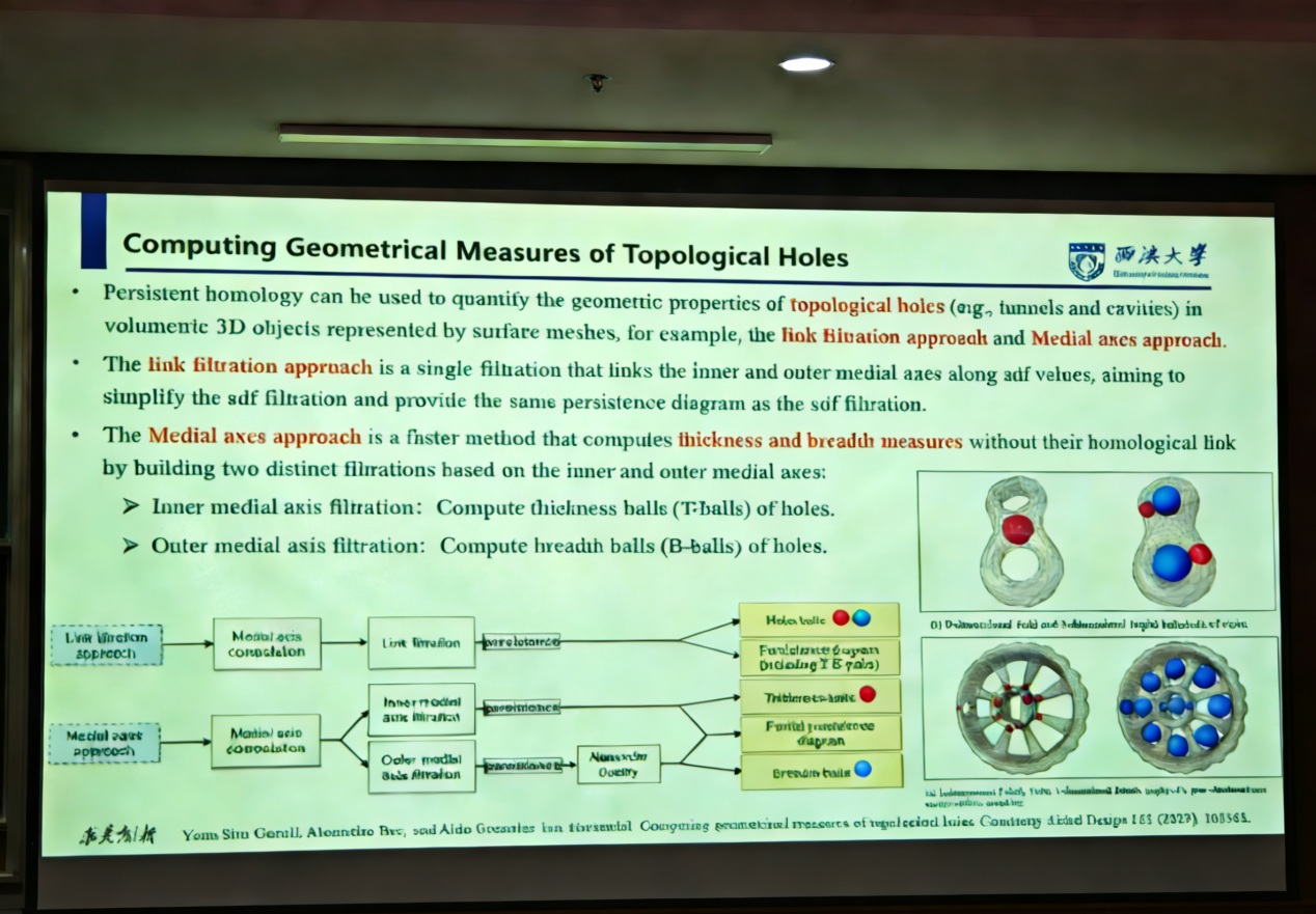 鲁学权教授聚焦三维视觉计算的前沿领域,系统阐述了3D几何处理与分析在当今科技发展中的核心地位与重要价值。他指出,随着自动驾驶、机器人智能感知、计算机图形学、虚拟现实与增强现实(VR/AR)等技术的飞速发展与深度融合,高效、精准的3D视觉计算已成为推动相关产业突破的关键基石。他介绍了3D视觉计算的基础理论与技术框架,并重点分享了团队在该领域取得的两项代表性研究成果。针对大规模、高噪声或非均匀点云数据,团队创新性地提出了基于人工智能的智能滤波、补全与重建方法,显著提升了点云数据的质量与可用性,为后续的高层次理解与应用奠定了坚实基础;团队通过设计高效的深度学习架构与特征学习机制,实现了对点云数据的语义分割、目标识别与场景理解,在复杂真实场景中展现了优异的性能。鲁教授结合具体的应用需求,详细讲解了这些技术背后的设计思想、算法原理及实际效能。